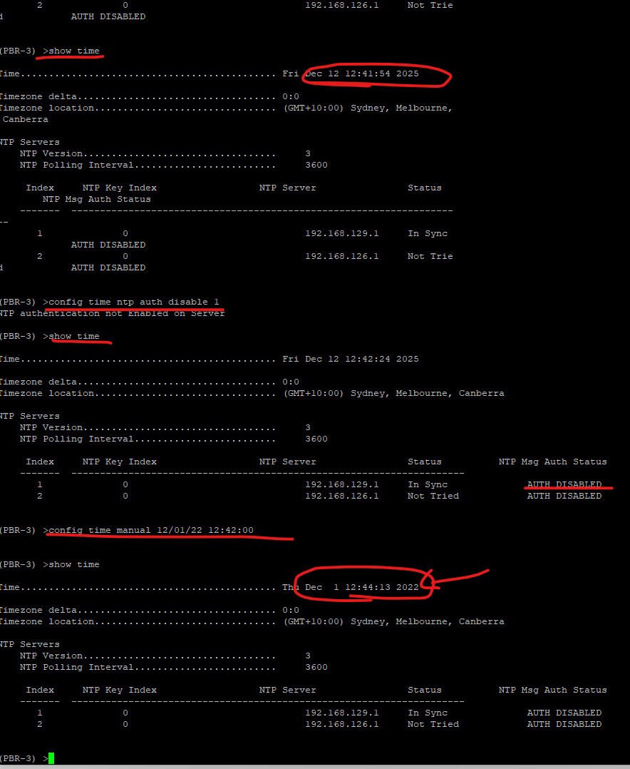 config time ntp auth disable X (insert ntp server(s)) - manually adjust time to pre Dec 4 2022 but after 4 November
