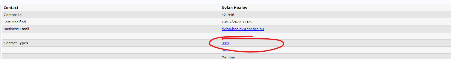 - Go back to the contact search page, find the user you are editing and double click the Contact Type area