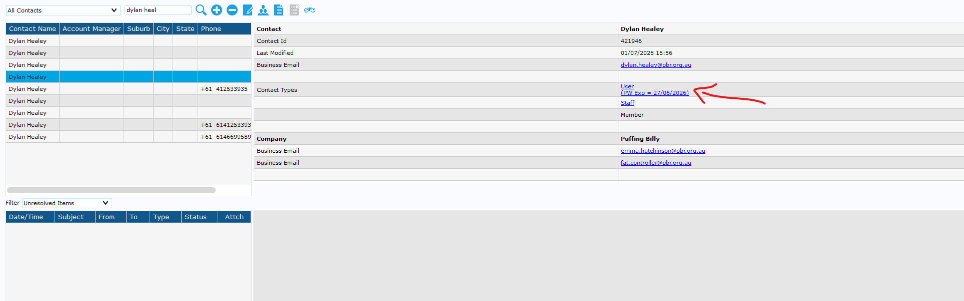 - To confirm this has been done you can see the expiry date no longer shows under Contact Types