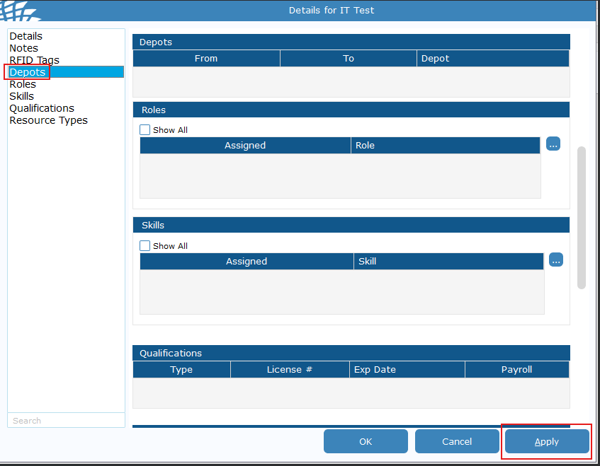 - This box will open up. Click "Depot" on the left-hand side and click "Apply".