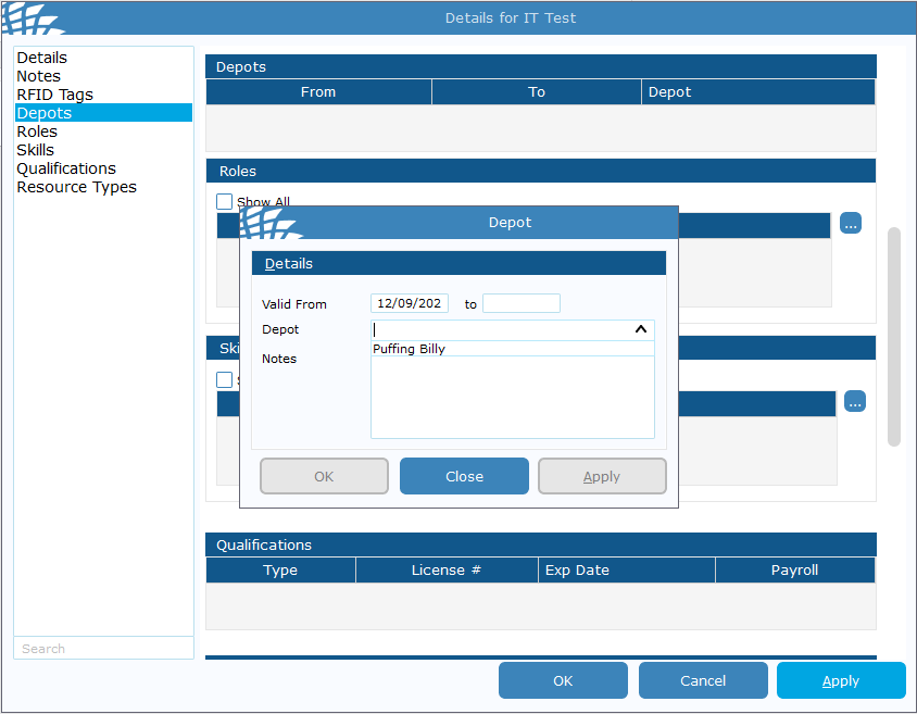 - This box will appear, in "Depot", select "Puffing Billy". hit apply and then close.