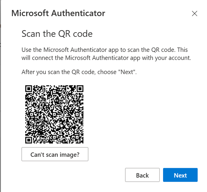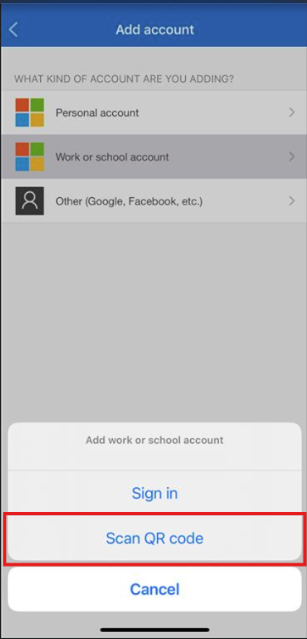 - Once the QR code appears on your screen, open the Authenticator app on your phone and add account.