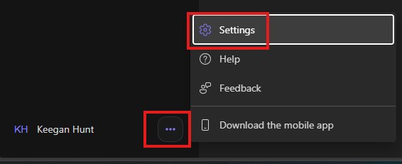 - Navigate to Chat | M365 Copilot. In the bottom left corner next to the users name, select the 3 dots, then settings