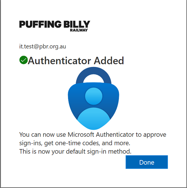 - Congratulations, you have successfully added Microsoft Authenticator as your Multi-factor authentication.