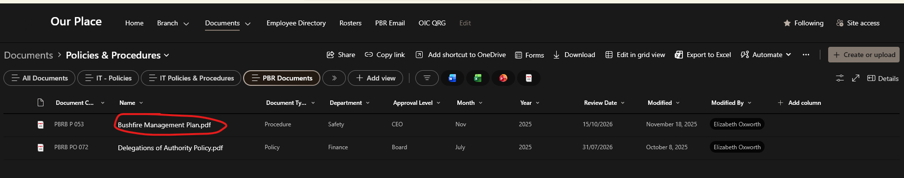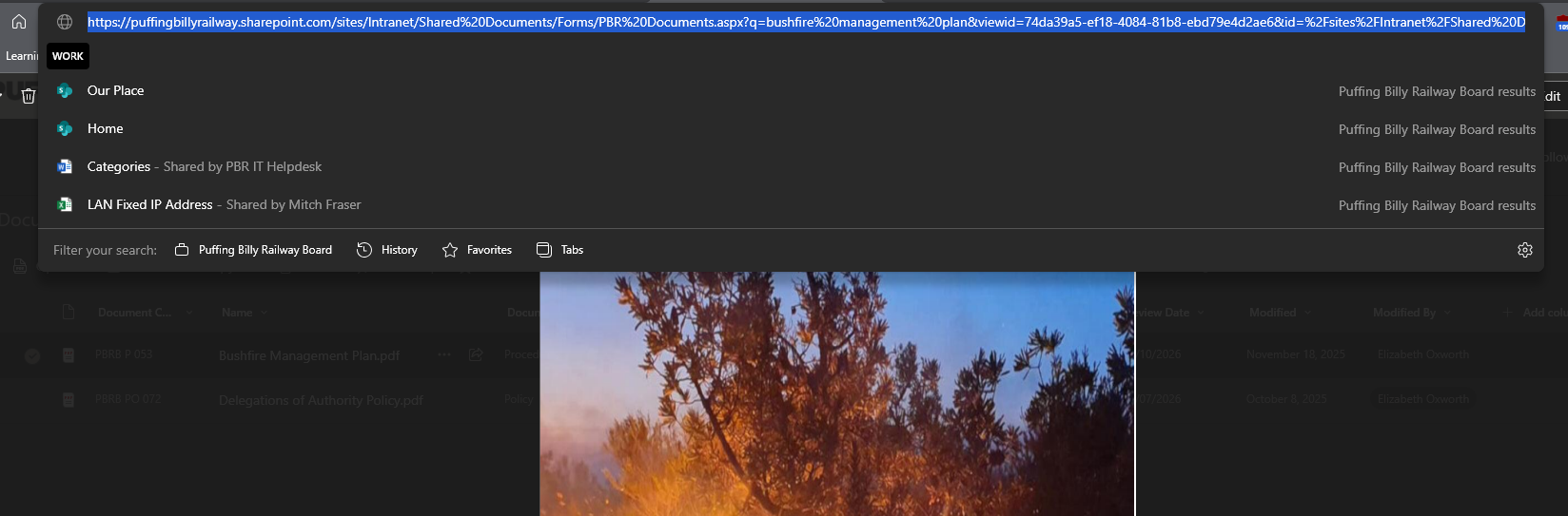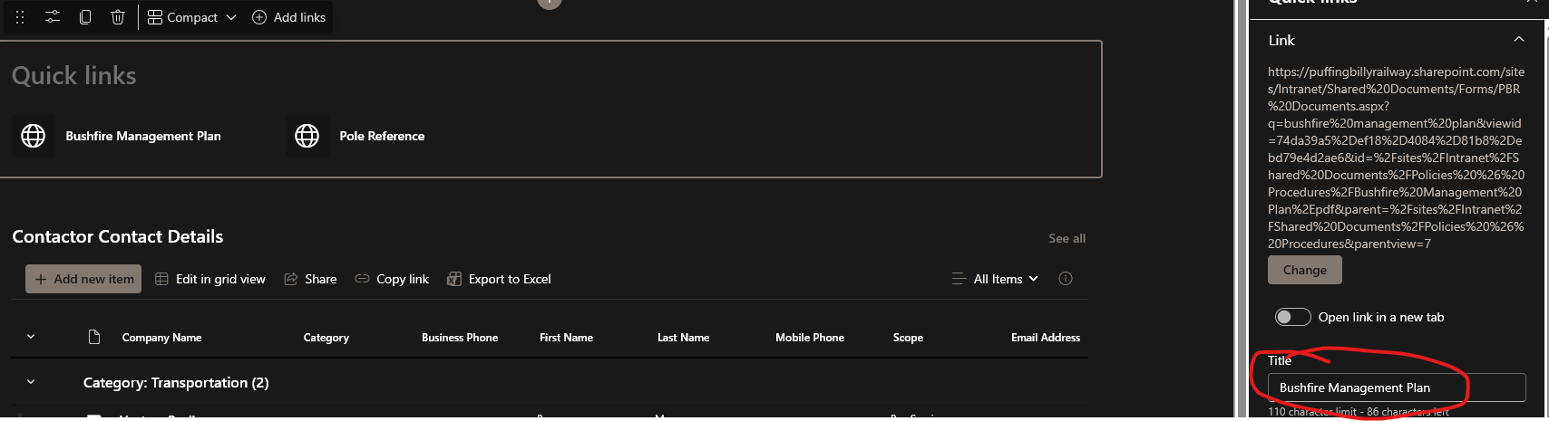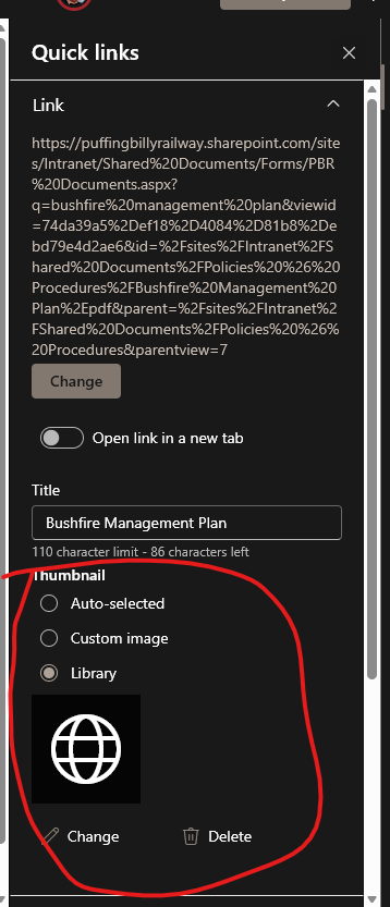 - Grab the website link you want to add to the page. For this example, I will be adding the Bushfire Mangement Plan to the OIC Quick Reference Guide