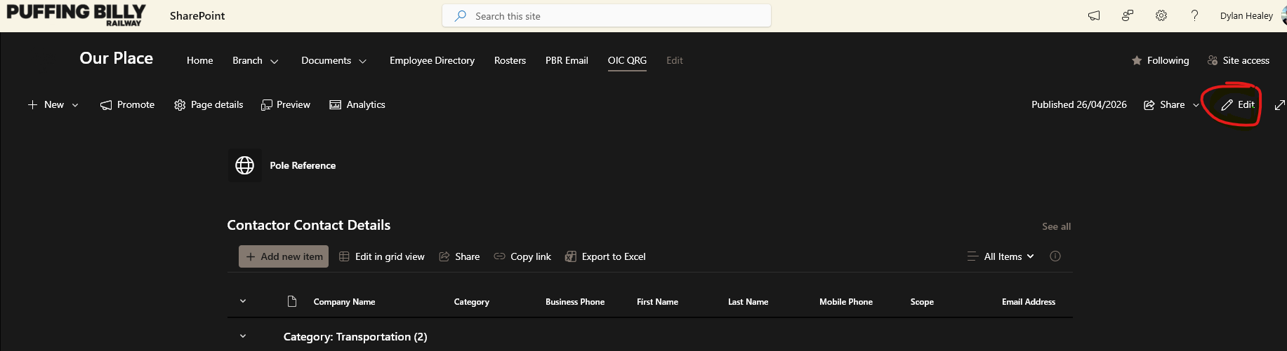 - Click Edit on the right-hand side of the page.