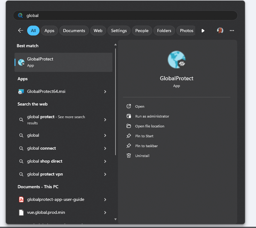- IF connected correctly the Global Protect window will hide in the task bar, you are able to confirm your connect status by opening your task menu and clicking the Icon.